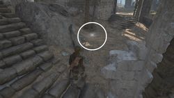 Sauter sur le toit de la maison juste en face et récolter des plumes dans un nid. Entrer ensuite dans la maison et trouver 1 document (1/16) (Grec EXP +15) sur la table (EXP +15). Ressortir et grimper dans la tour en ruines. Ouvrir 1 coffre-fort (2/5) verrouillé pour trouver 1 pièce de pistolet lourd (1/4) (EXP +50).