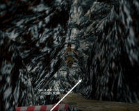 Secret 2 : Dans cette salle, une ouverture à droite. Sauter. Pousser la caisse rapidement pour éviter le boulet. Déplacer de nouveau la caisse pour pouvoir grimper. Suivre le tunnel et descendre dans le tunnel du boulet. Prendre le fusil, une recharge uzi et une grande trousse. Revenir. Dans la salle supérieure, prendre une recharge uzi et une grande trousse. Se laisser descendre et ressortir.