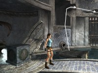 Ressortir. Sauter vers le pilier de droite de la structure centrale. Contourner le coin, lâcher prise, se rattraper à la corniche. Grimper sur le bloc cassé, attraper le rebord, sauter vers le haut et se hisser. Remonter tout en haut grâce aux rebords et sauter vers la première plate-forme que Lara a tiré.
